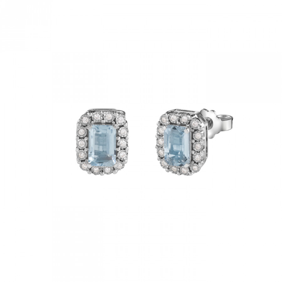 Orecchini Bliss Stephanie in oro bianco 18 kt diamanti 0,11 ct e acquamarina 0,24 ct