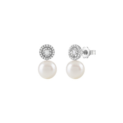 Orecchini Bliss Rugiada in oro bianco 18 kt diamanti 0,15 ct e perle
