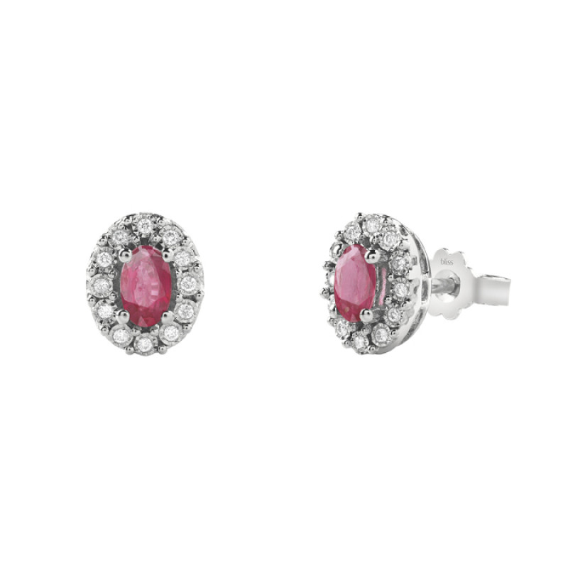 Orecchini Bliss Regal in oro bianco 18 kt diamanti 0,08 ct e rubini 0,7 ct