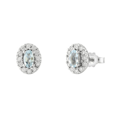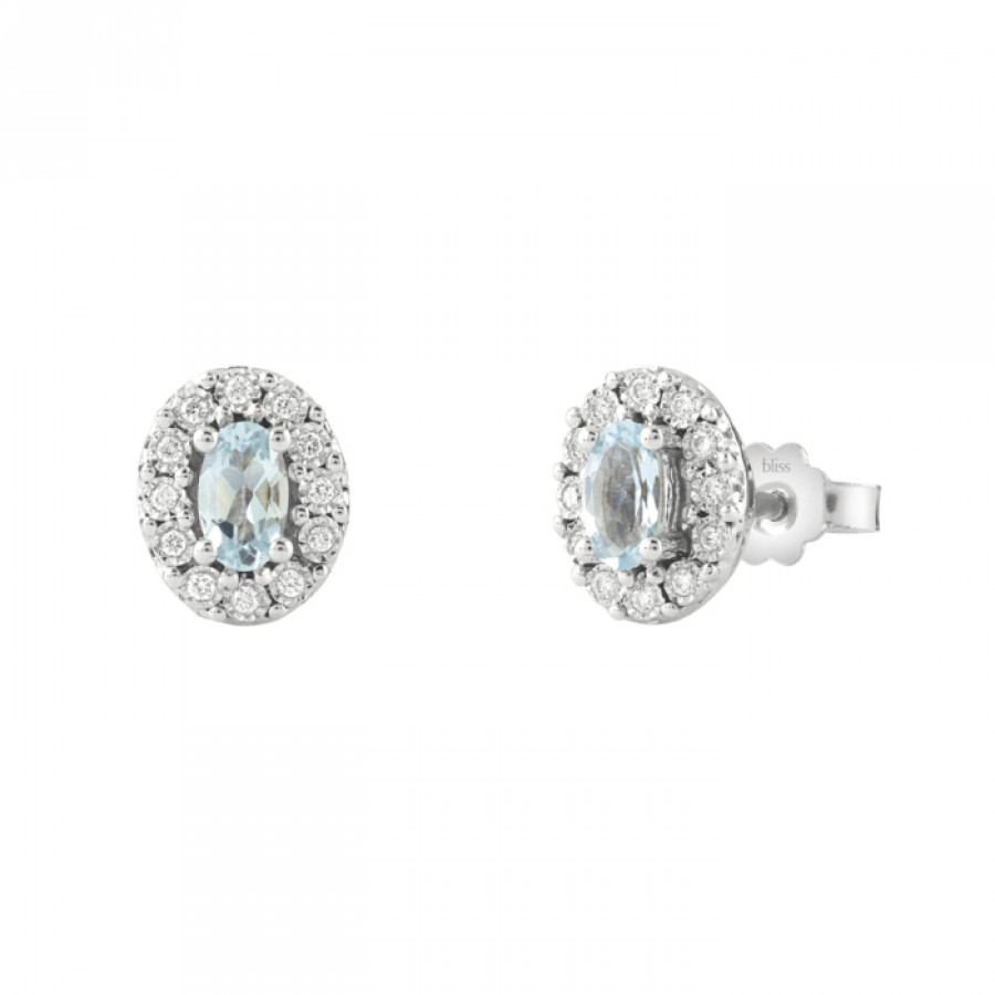 Orecchini Bliss Stephanie in oro bianco 18 kt diamanti 0,08 ct e acquamarina 0,1 ct