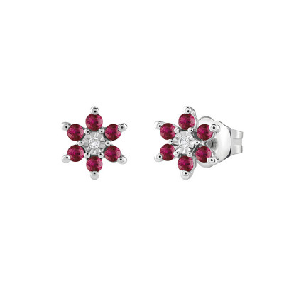 Orecchini in oro bianco con diamanti 0,24 ct. G Si e rubini 0.01 ct.