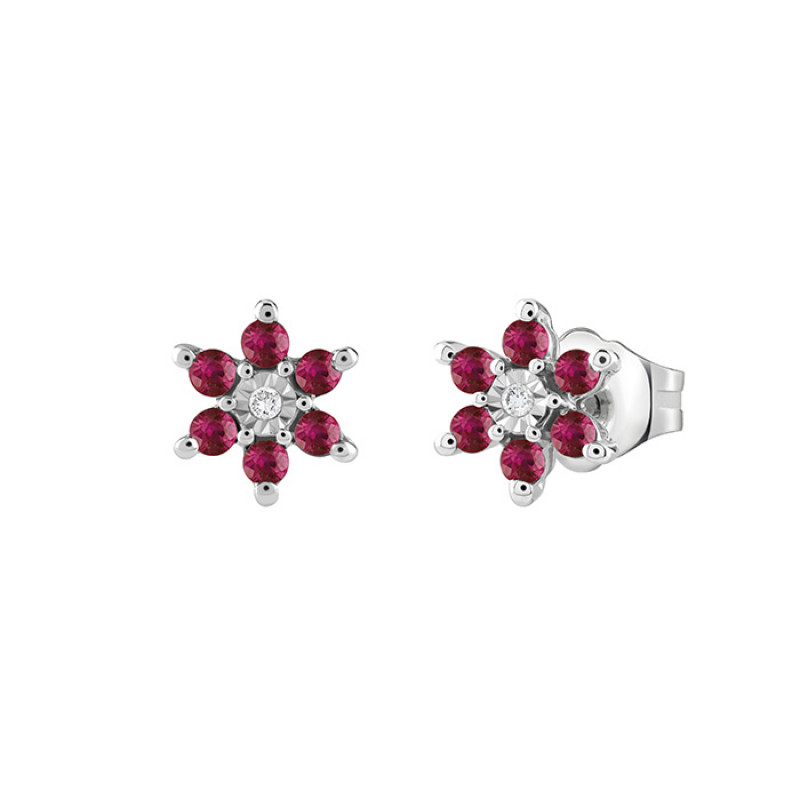 Orecchini Bliss in oro bianco 18kt, rubini e diamanti della collezione Elisir