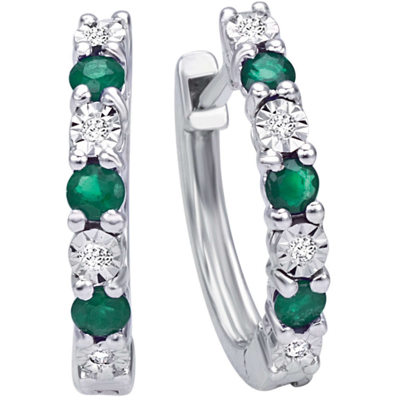 Orecchini oro Bianco 18 k E Brillanti Di Carati 0,03 e Smeraldi Di Carati 0,30