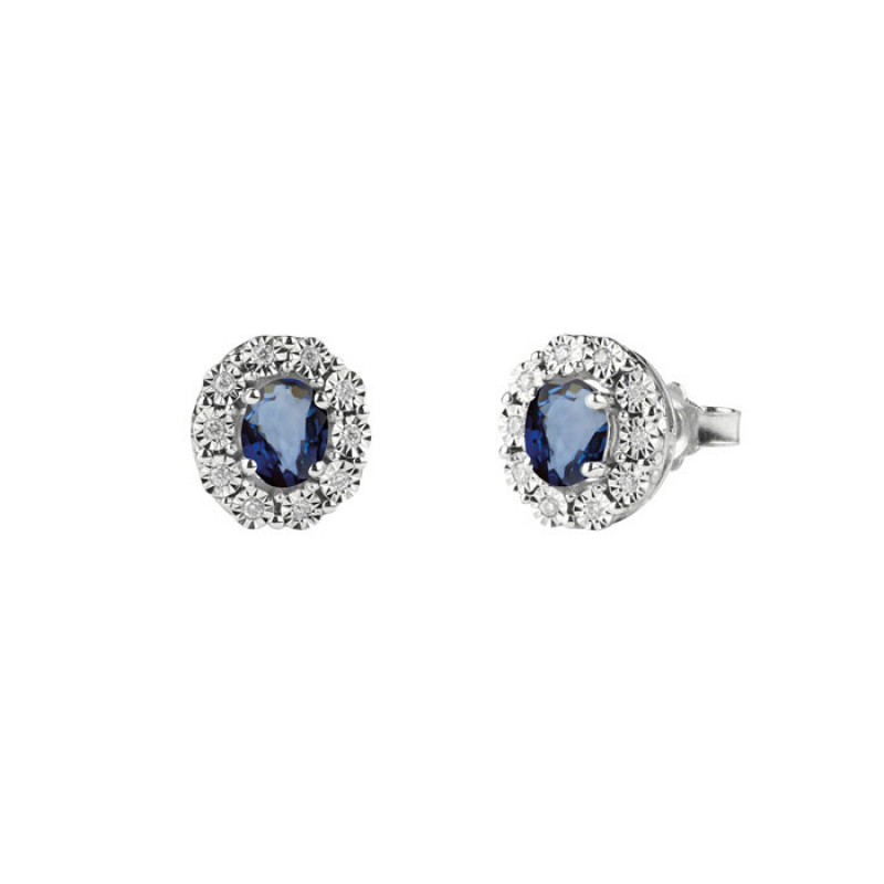Orecchini in Oro Bianco 18 k, 0,1 carati di Diamante e 1,2 carati di Zaffiro