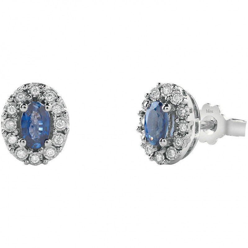 Orecchini Da Donna Di Bliss Della Collezione Regal. Orecchini In Oro 18 Carati Bianco Con Diamante E Zaffiro.