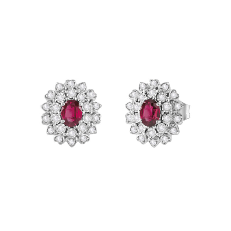 Orecchini in oro bianco 18 kt e rubini 0,44 ct taglio ovale con diamanti 0,2 ct GH