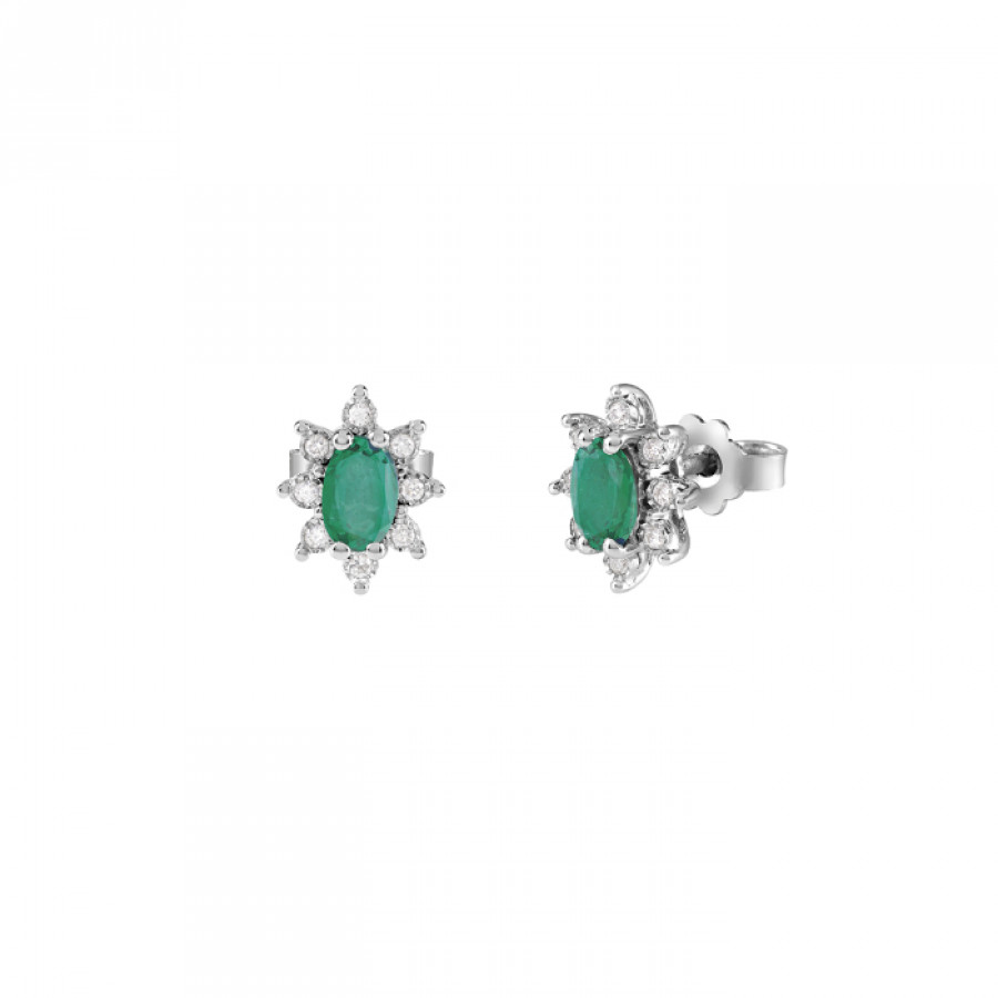 Orecchini Bliss Rugiada Colors in Oro Bianco 18kt, Smeraldi 0,7 ct e Diamanti 0,08 ct Gh
