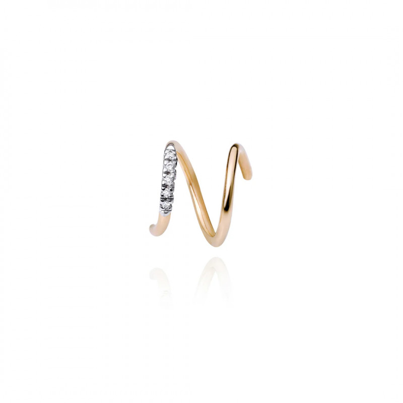 Orecchino Burato Gioielli singolo sinistro a spirale in oro giallo 18 kt e diamanti della collezione Linee ed Archi