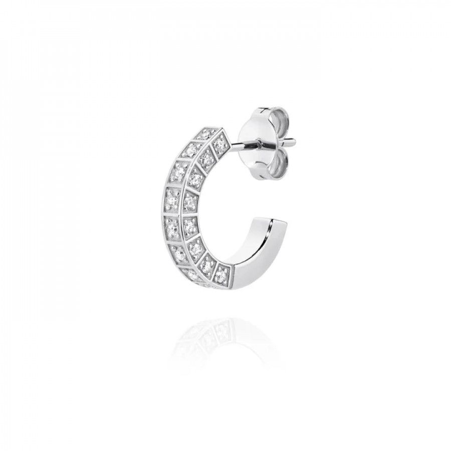 Orecchino Burato Gioielli singolo in oro bianco 18 kt con diamanti della collezione Linee ed Archi.