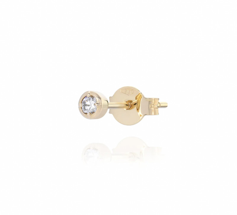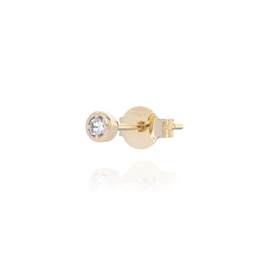 Orecchino singolo solitario in oro giallo 18 kt con diamante bianco taglio rotondo