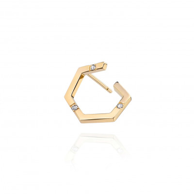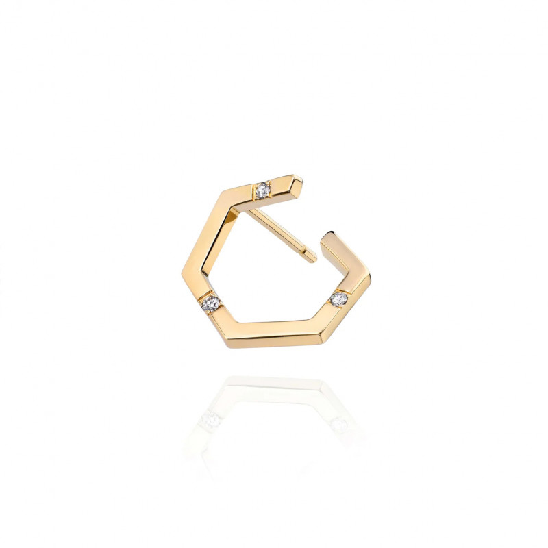 Orecchino esagonale in oro giallo 18 kt con diamanti bianchi ct. 0.03 F VVS