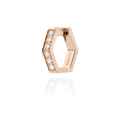 Orecchino Burato Gioielli cerchio esagonale S in oro rosa 18 kt e full pavè diamanti della collezione Amuleto.