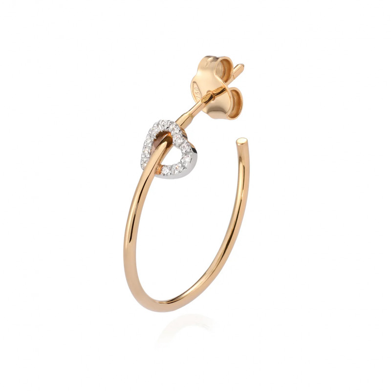 Orecchino Burato Gioielli cerchio sinistro Cuore in oro giallo 18 kt e diamanti della collezione Con Amore