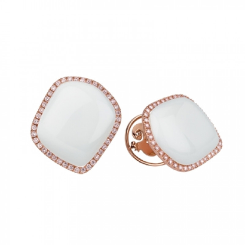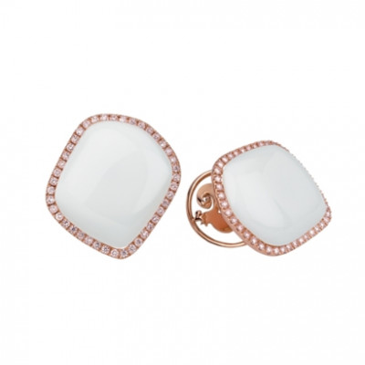 Orecchini pendenti corti in oro rosa, due elementi in kogolong e diamanti, di Chantecler appartenente alla collezione Enchanté.