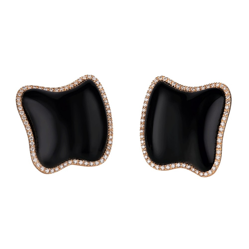 Orecchini a lobo in oro rosa 18Kt, diamanti e onice di Chantecler appartenente alla collezione Enchanté.