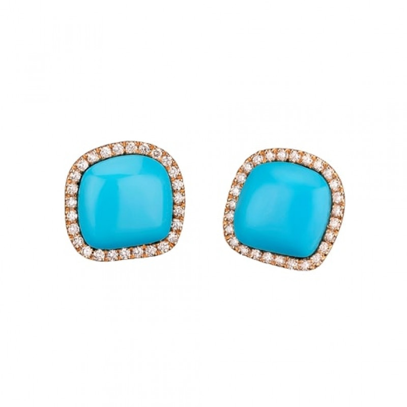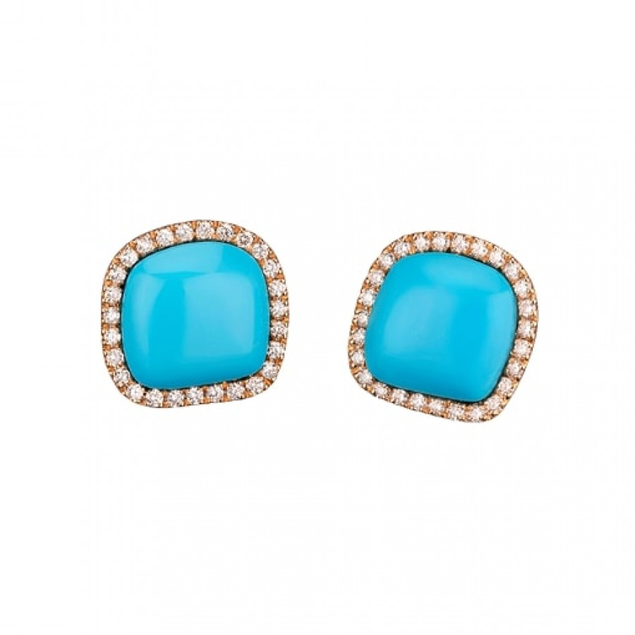 Orecchini Chantecler a lobo in oro rosa 18Kt, diamanti e turchese appartenente alla collezione Enchanté.