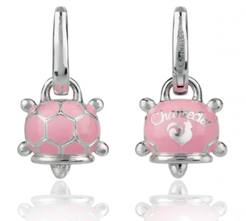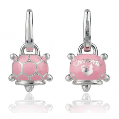 Orecchini tartaruga micro in argento, smalto rosa e diamante bianco, appartenente alla collezione Et Voilà di Chantecler.