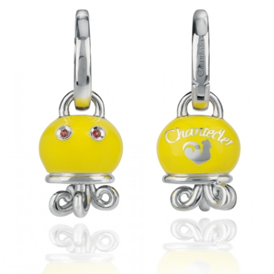 Orecchini polipo micro in argento, smalto giallo e zaffiri arancio, appartenente alla collezione Et Voilà di Chantecler.