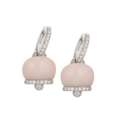 Orecchini medi in oro bianco 18 kt, diamanti e corallo rosa, appartenente alla collezione Campanelle di Chantecler.
