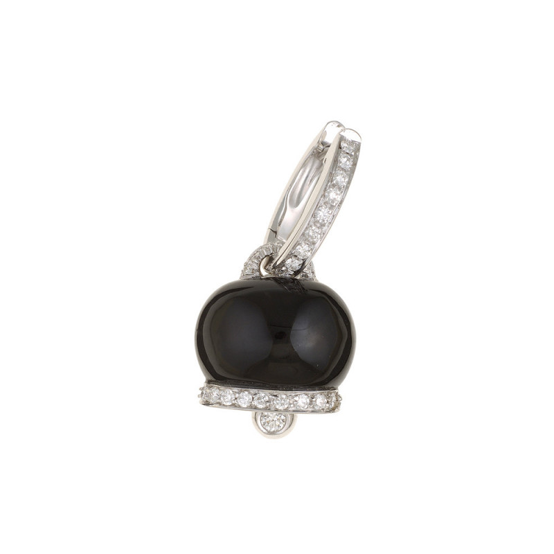 Orecchini medi in oro bianco 18 kt, diamanti e onice, appartenente alla collezione Campanelle di Chantecler.
