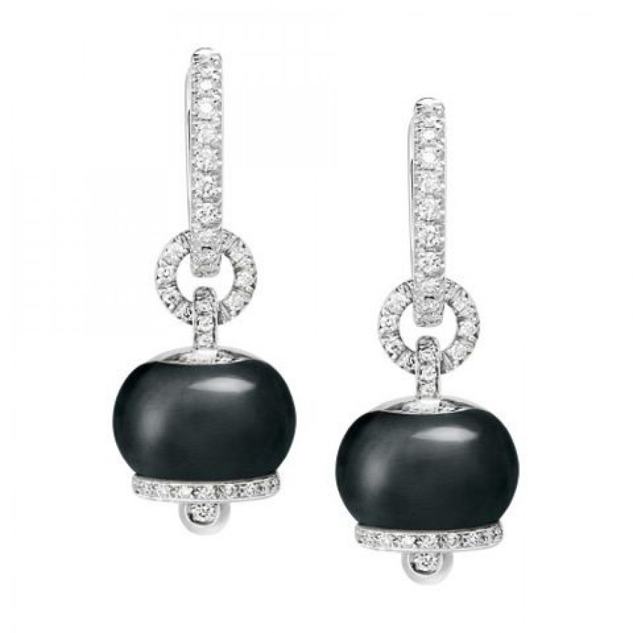 Orecchini piccoli in oro bianco 18 kt, diamanti e onice, appartenente alla collezione Campanelle di Chantecler.