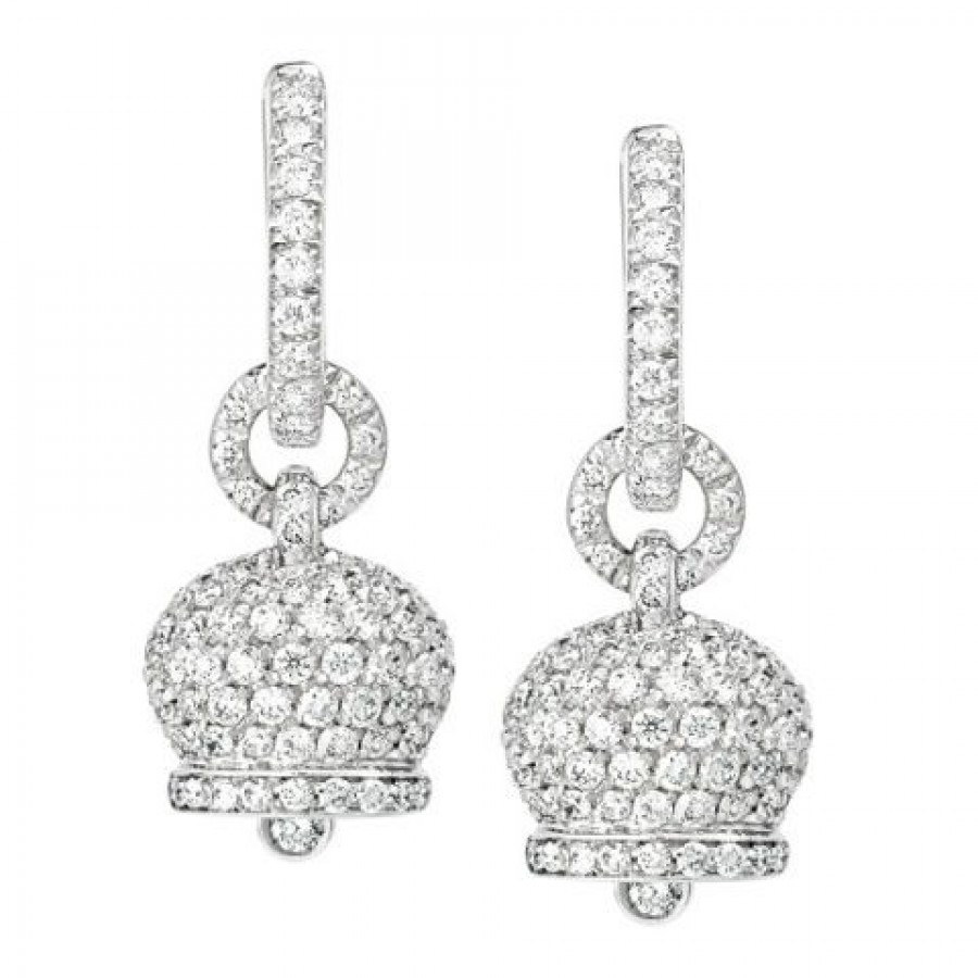 Qui gli orecchini Chantecler Campanelle sono in oro bianco 18 kt e pavé di diamanti 1.80 ct.