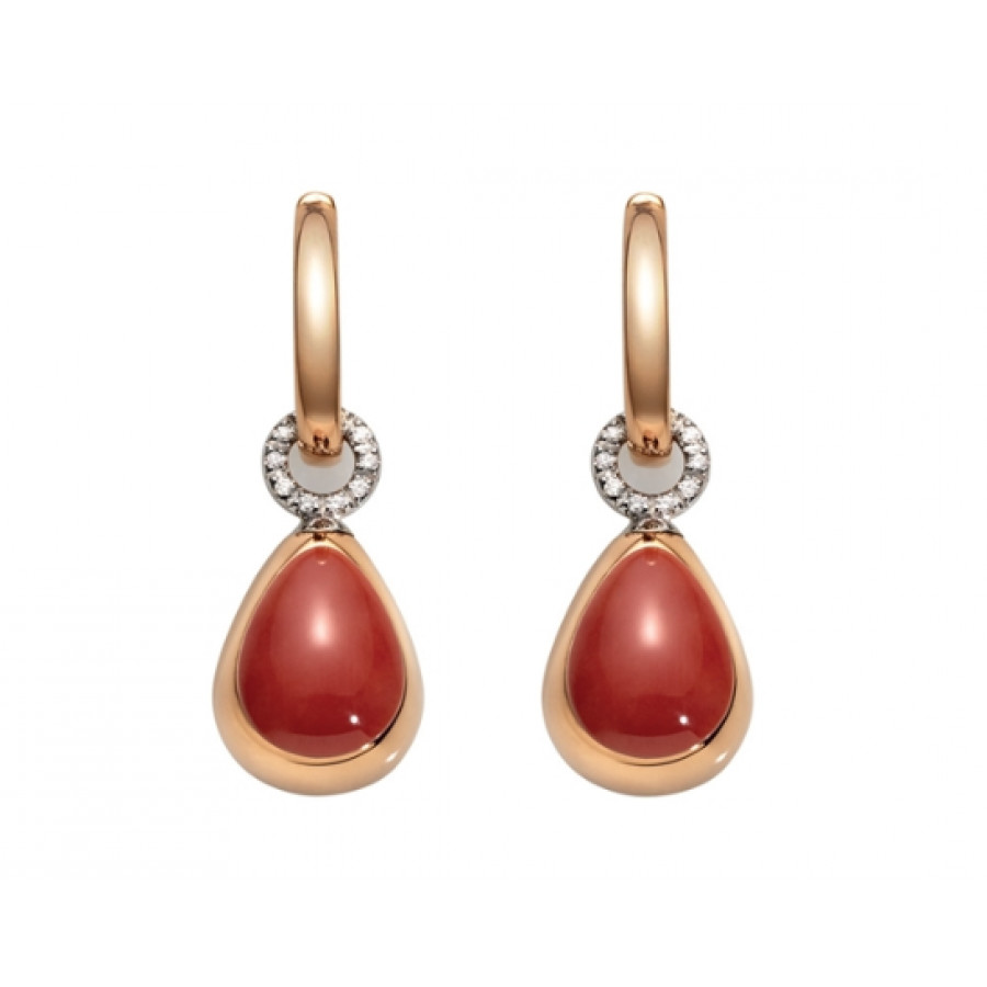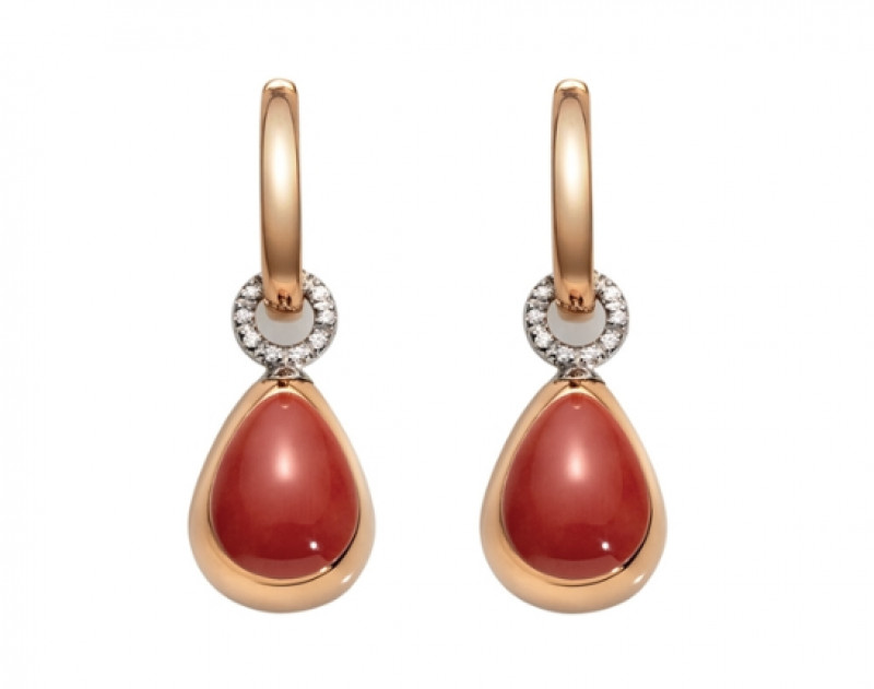 Orecchini piccoli, goccia in oro rosa lucido e inserto centrale in corallo rosso, biglierina solo oro, di Chantecler della collezione Capriful