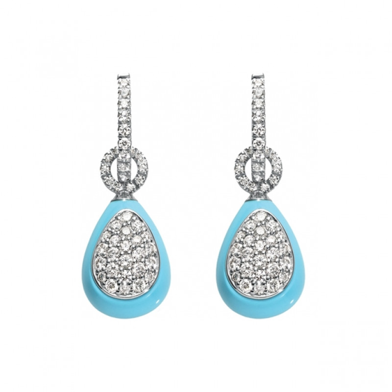 Orecchini piccoli, goccia turchese e inserto centrale in pavé di diamanti bianchi, biglierina con diamanti, di Chantecler della collezione Capriful
