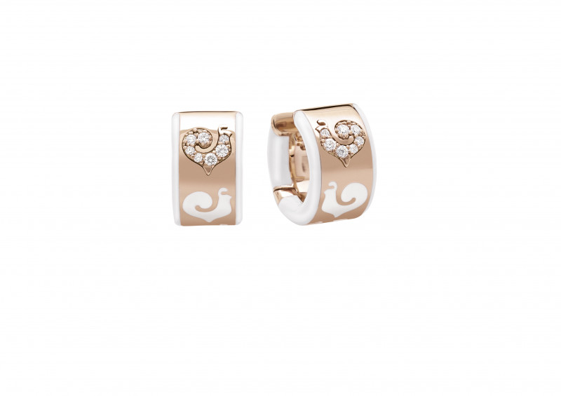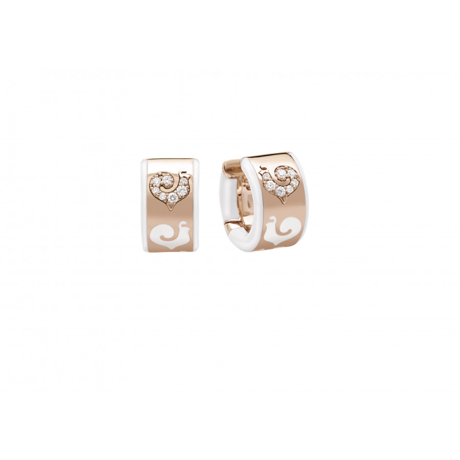 Orecchini cerchietto Carousèl oro rosa, diamanti e smalto bianco