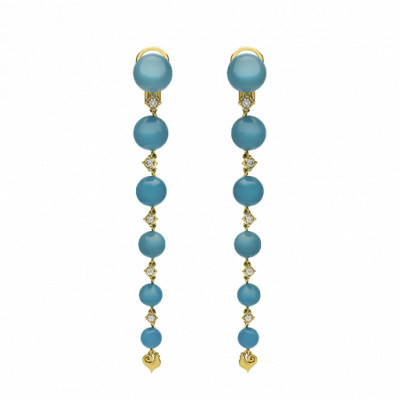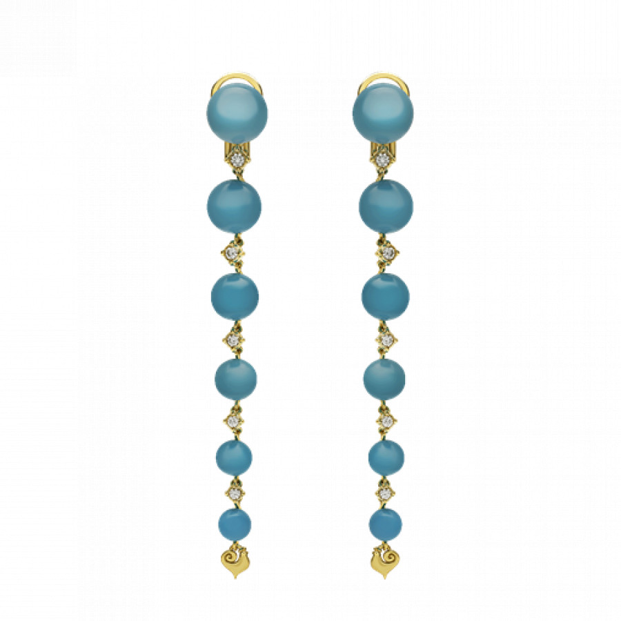 Orecchini pendenti Cherie in oro giallo 18Kt, diamanti e turchese.