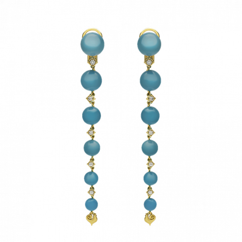 Orecchini Chantecler pendenti Cherie in oro giallo, turchese e diamanti bianchi, appartenente alla collezione Cherie.