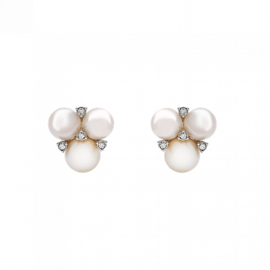 Orecchini Chantecler a lobo Cherie in oro bianco, perle e diamanti bianchi, appartenente alla collezione Cherie.