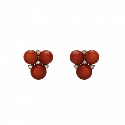 Orecchini Chantecler a lobo Cherie in oro rosa, corallo rosso e diamanti bianchi, appartenente alla collezione Cherie.
