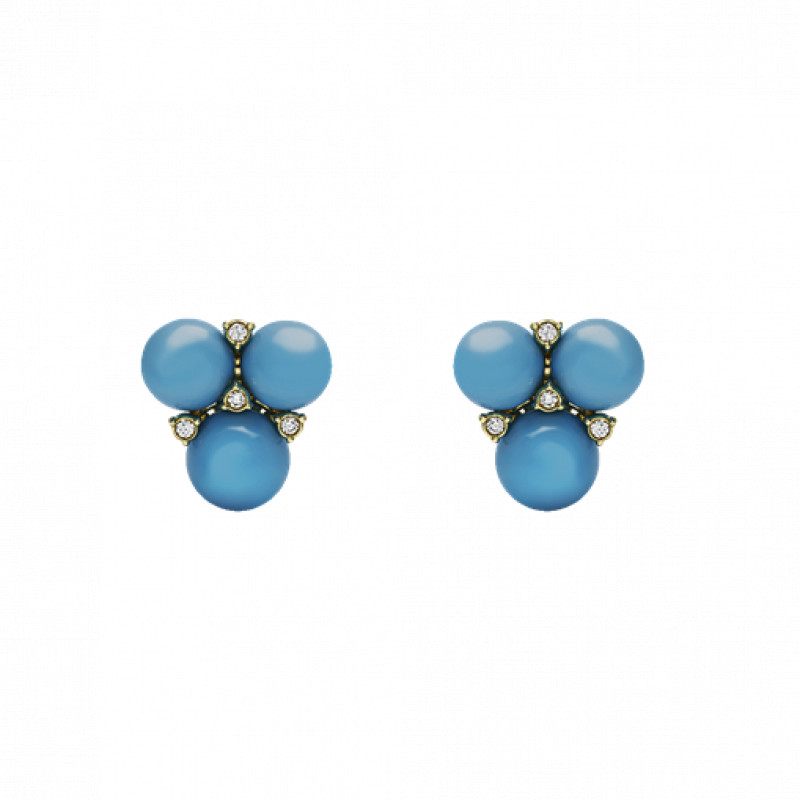 Orecchini a lobo Cherie in oro giallo 18Kt, diamanti e turchese.