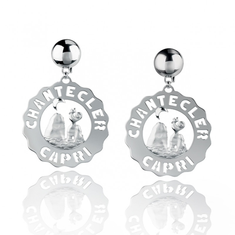 Orecchini grandi Faraglioni in argento con bottone di Chantecler appartenente alla collezione Et Voilà.