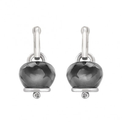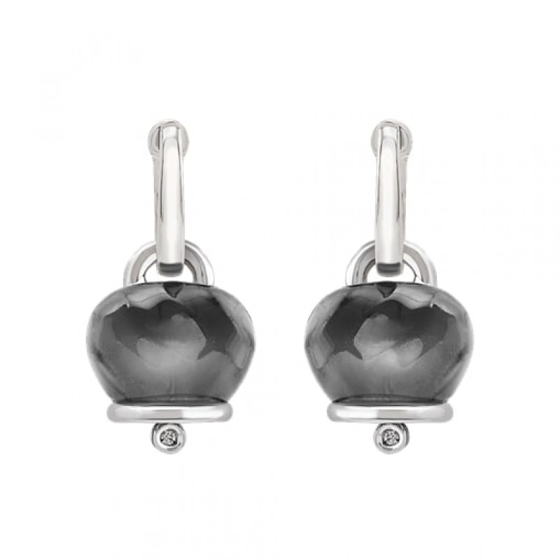 Orecchini Chantecler Campanelle piccoli in argento, rresina sfaccettata a mano color nero e due diamanti, appartenente alla collezione Et Voilà.