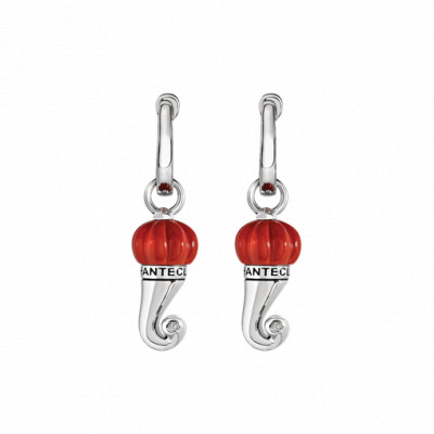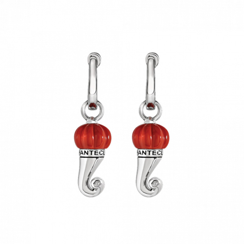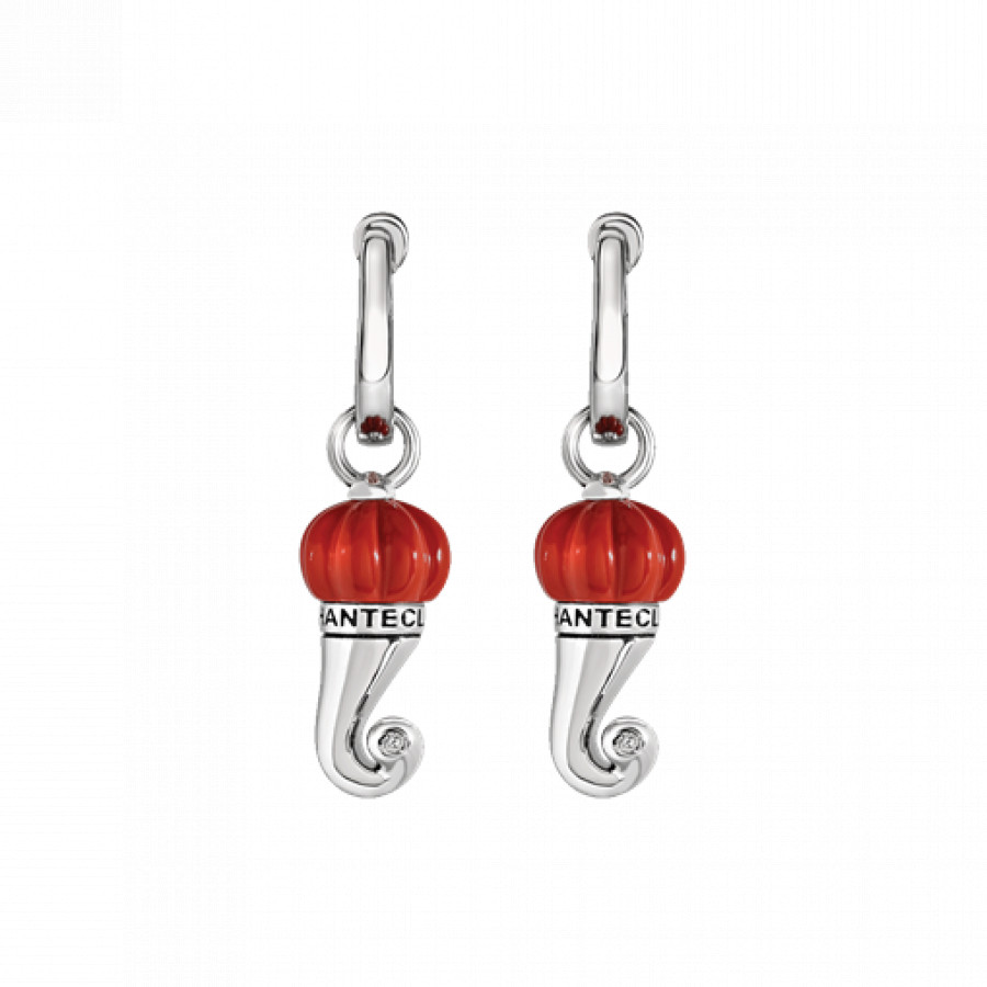 Orecchini Chantecler Corno piccoli in argento, resina color corallo e due diamanti taglio brillante, collezione Et Voilà.