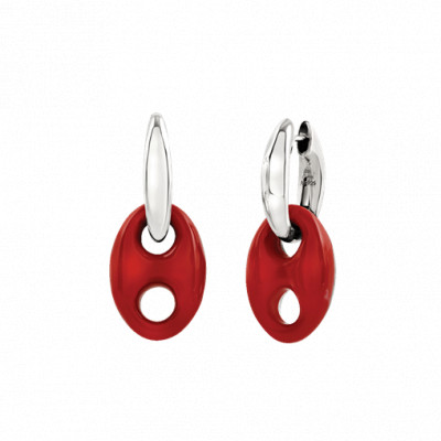 Orecchini Chantecler Capriness maglia marina in argento e bioresina color corallo scolpita a mano, appartenente alla collezione Et Voilà.