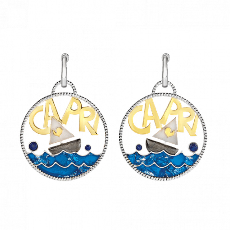 Orecchini Chantecler Logo Moonlight grandi in argento e scritta in argento e bioresina scolpita a mano colore del mare, appartenente alla collezione Et Voilà Logo.