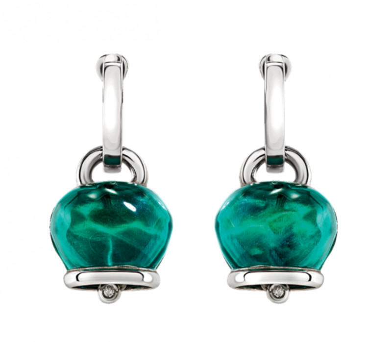 Orecchini Chantecler medi, con resina sfaccettata a mano color verde Paraiba su argento e due diamanti taglio brillante, appartenente alla collezione Et Voilà.