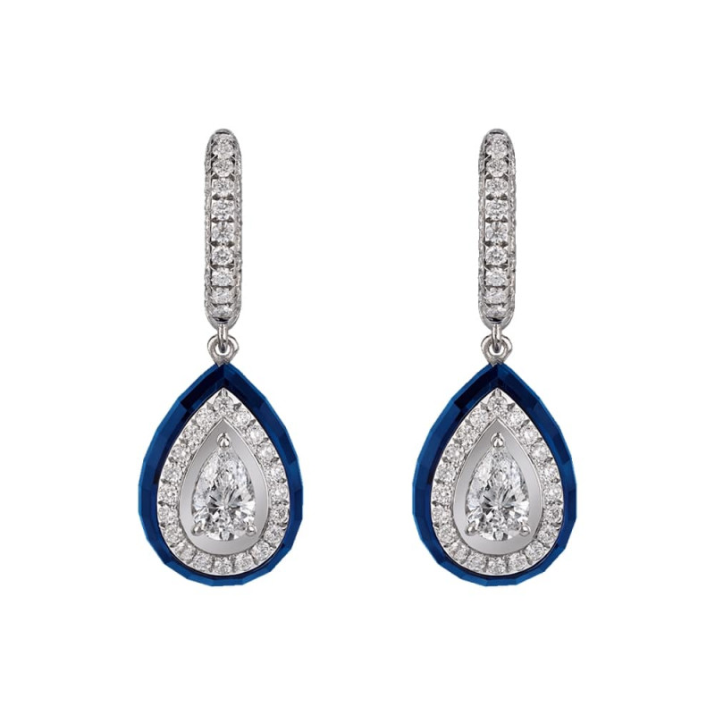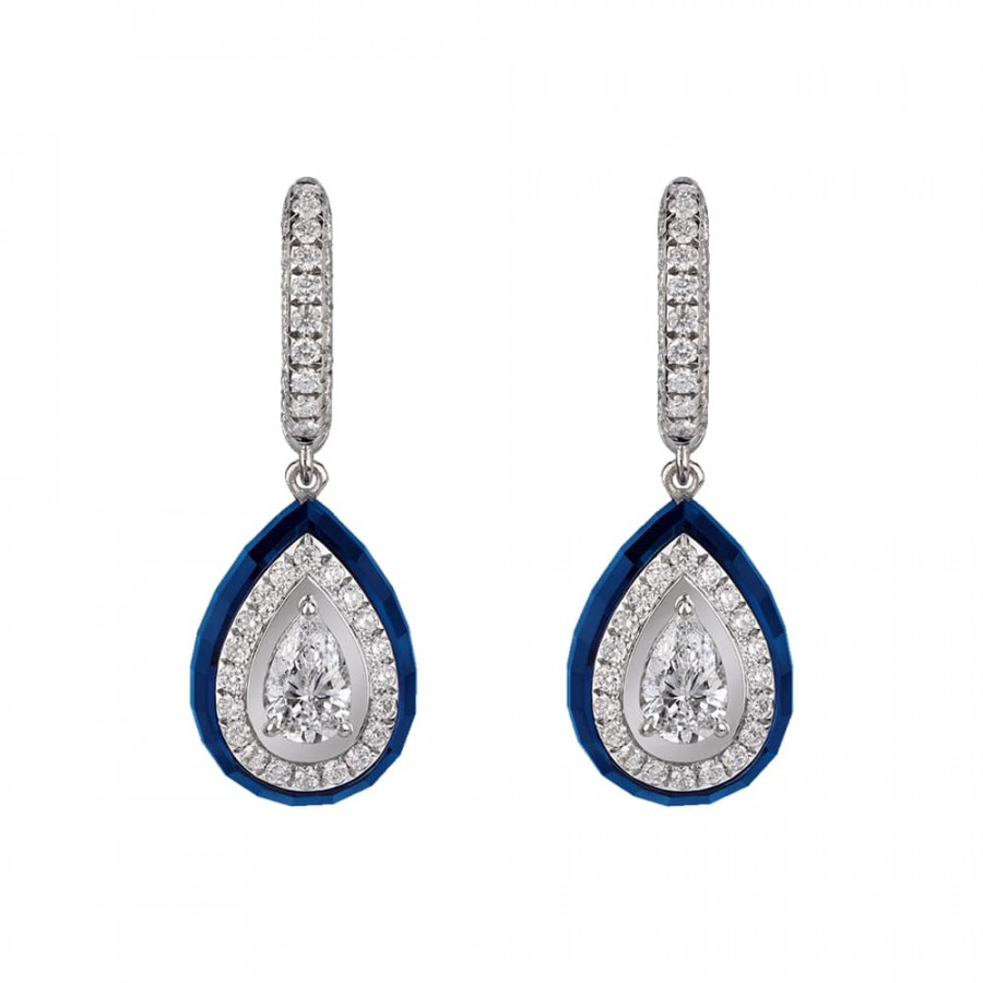 Orecchini in oro bianco 18 Kt, diamanti e spinello blu di Chantecler della collezione Joyful.