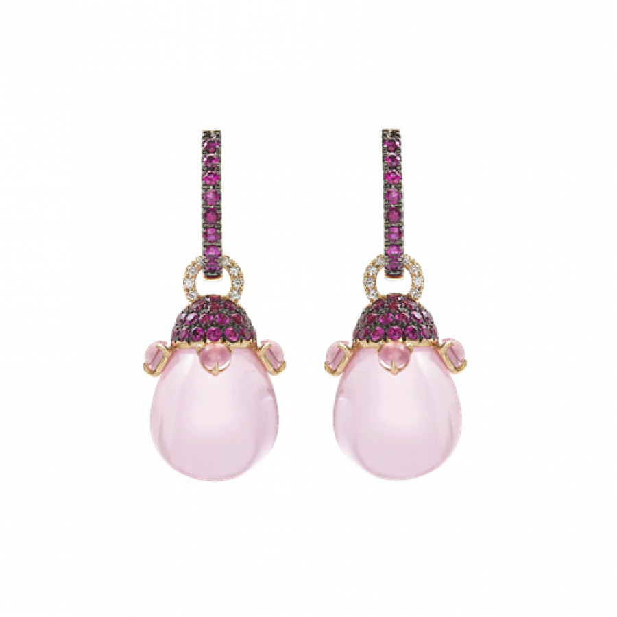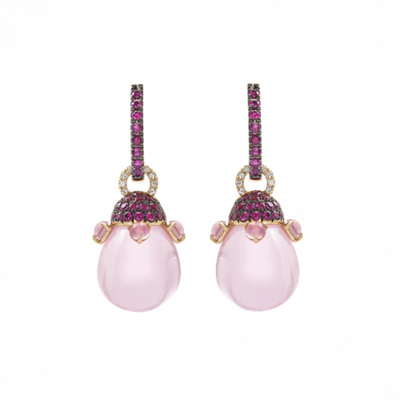 Orecchini in oro rosa 18 Kt, diamanti, zaffiri rosa e poire in cristallo color rosa di Chantecler della collezione Joyful.