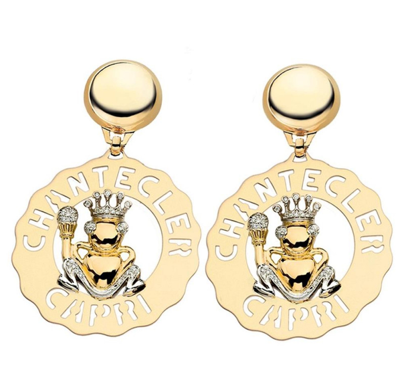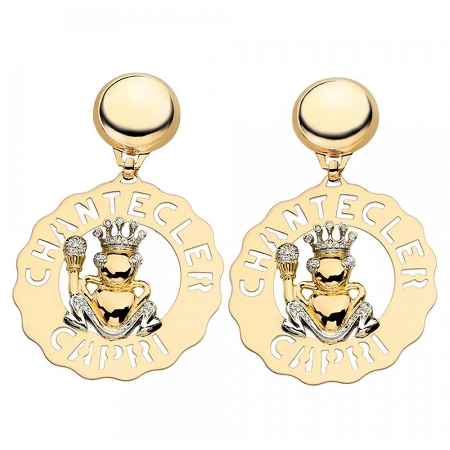 Orecchini Chantecler grandi Principe Ranocchio oro giallo, bianco e diamanti, appartenenti alla collezione Logo.