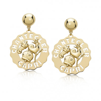 Orecchini grandi Gallo, Campanella, Cornetto in oro giallo e diamanti di Chantecler appartenente alla collezione Logo.