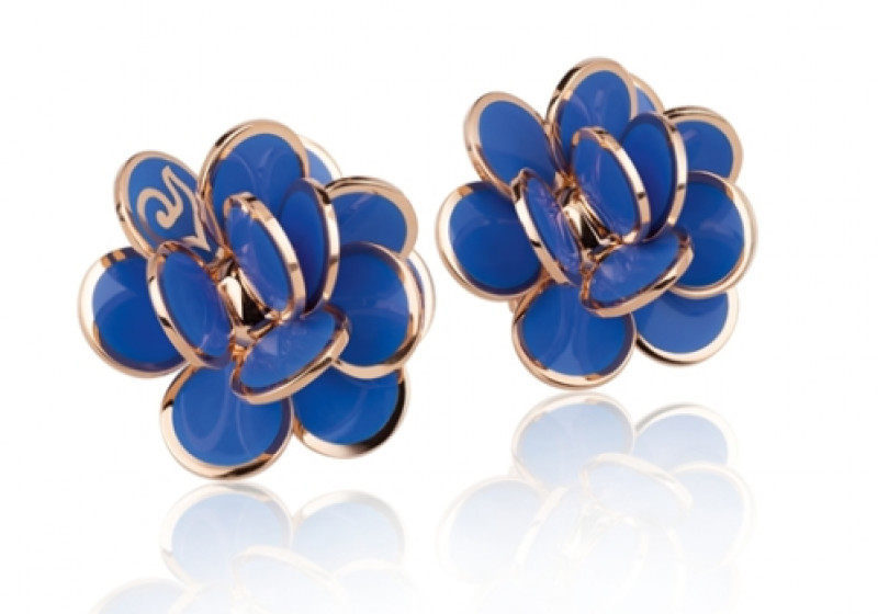Orecchini Chantecler in oro rosa e smalto azzurro