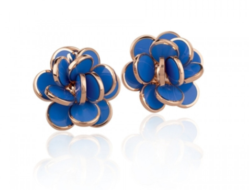 Orecchini Chantecler in oro rosa e smalto azzurro