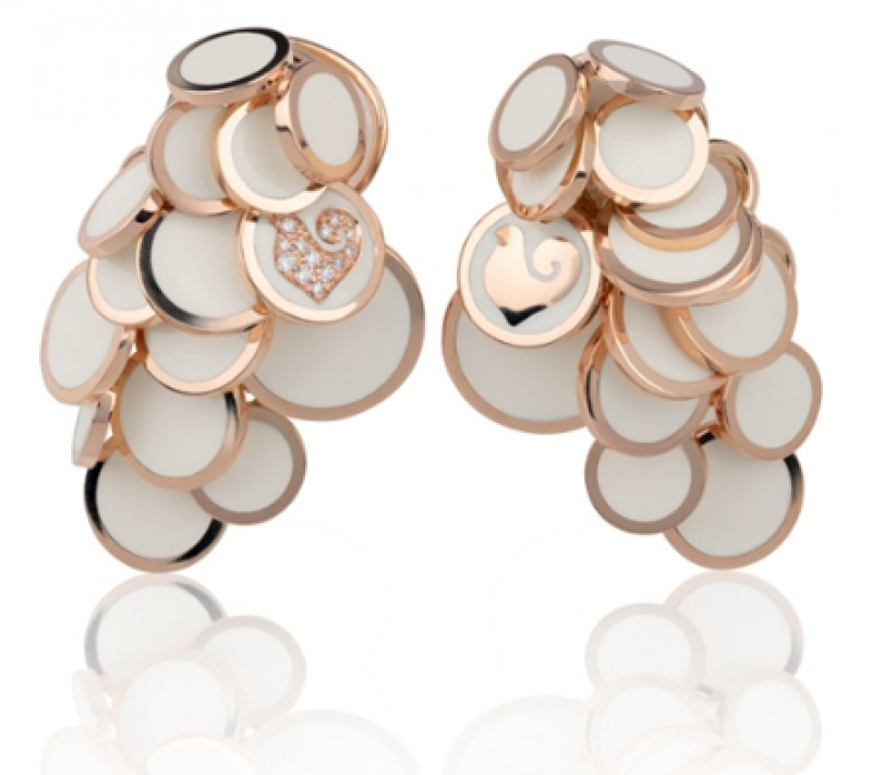 Orecchini Chantecler in oro rosa, diamanti e smalto bianco