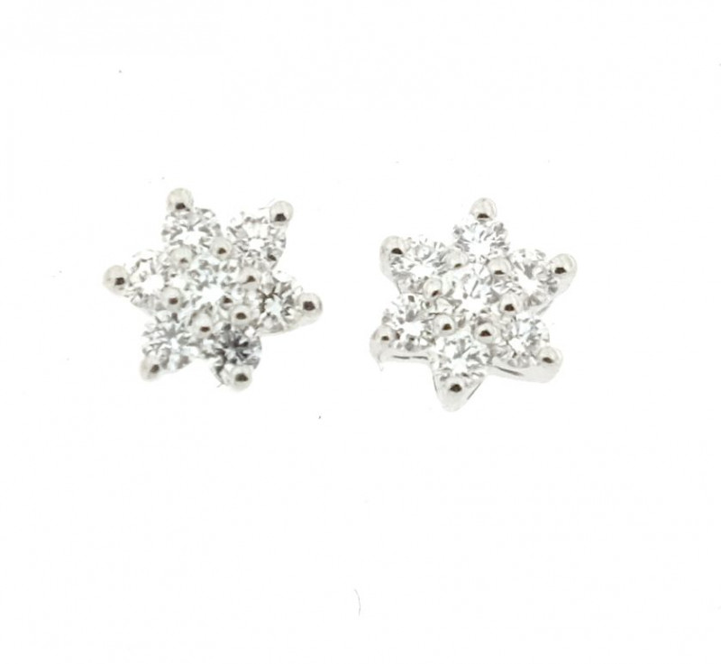 Orecchini Crivelli Mora piccola diamanti bianchi 0,40 ct, con chiusura a pressione. Questi orecchini sono un classico intramontabile, ed incarnano l’eleganza senza tempo, rielaborata in stile Crivelli. Sono composti da brillante centrale e piccoli diamanti che incastonati nei petali che lo compongono. Si denota anche dall’attenzione per i dettagli tipica del brand e della lavorazione artigianale orafa, Made in Italy.