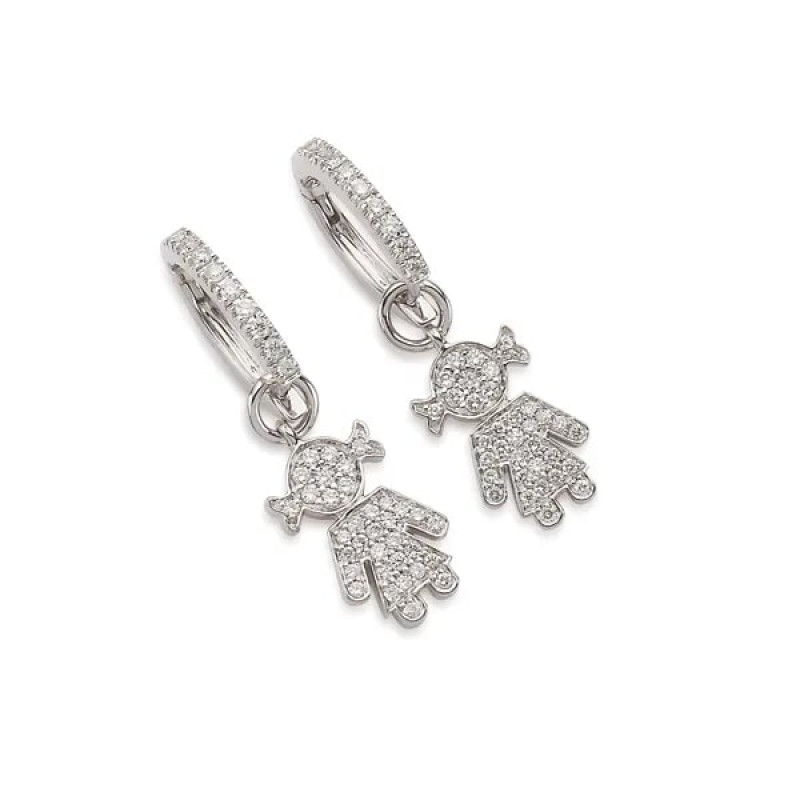 Orecchini in oro bianco 18 kt con ciondoli bimba e pavé di brillanti 0.62 ct. G Si, peso 6,30 gr.