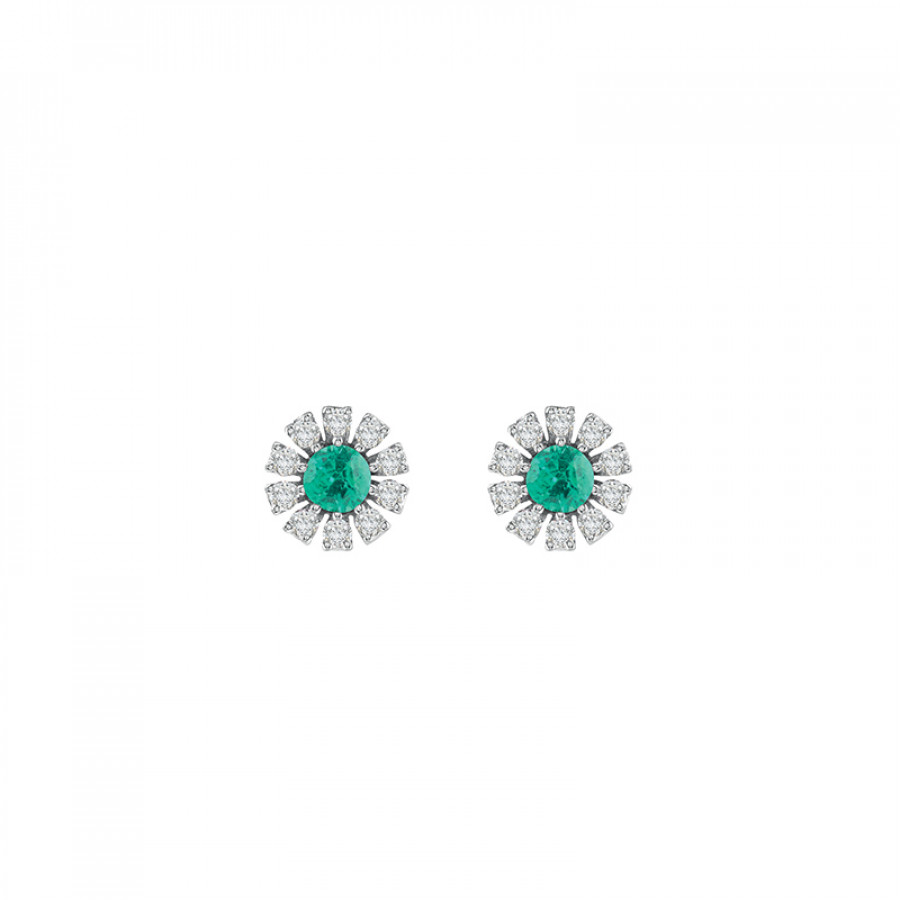 Orecchini Damiani Margherita in oro bianco, diamanti e smeraldi ct 0,15
